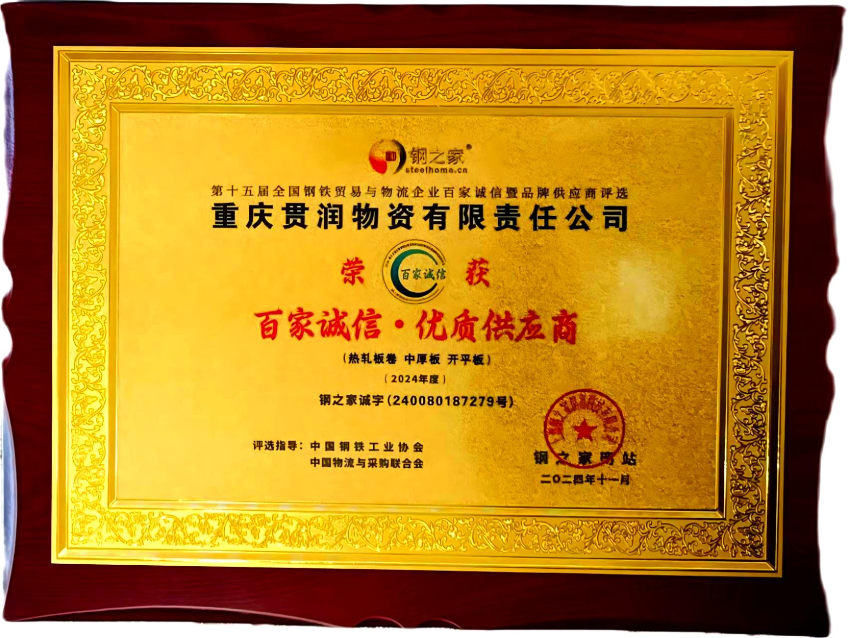 2023-2024年度我的鋼鐵網(wǎng)西南熱軋卷板優(yōu)質(zhì)貿(mào)易企業(yè)